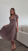 Limited Edition print lightweight Tencel blend dress featuring a v-neck, ruched sleeves, and partial back smocking